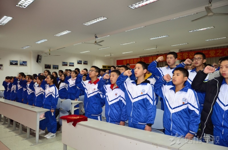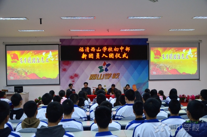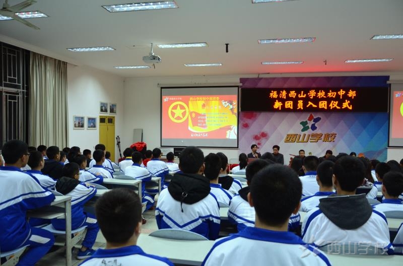 1月15日晚,西山学校初中部团支部在一号教学楼二楼多媒体会议室隆重举行了新团员入团宣誓仪式。出席本次活动的有初中部校长孔令金、政教处副主任丁波、梅碧龙、团支部书记唐怀会、郑丹丹老师及75名新团员。